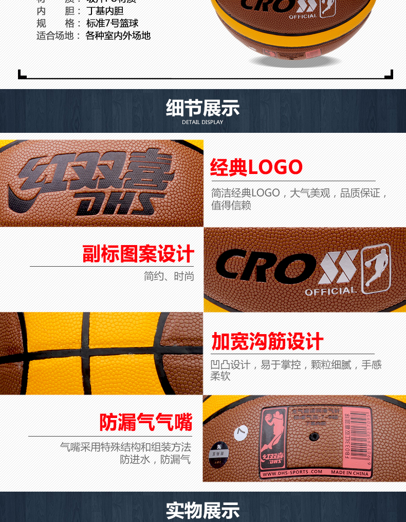 紅雙喜FB034籃球 防滑高彈訓練比賽室內(nèi)室外籃球 配球袋氣針