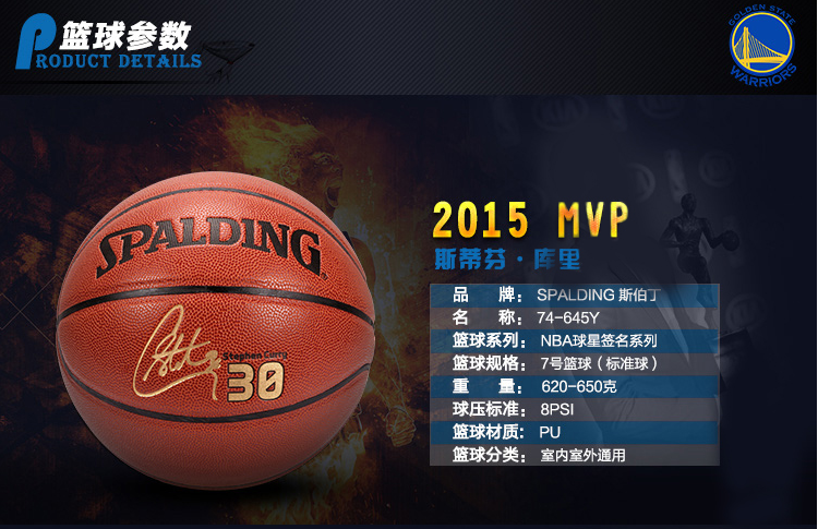 斯伯丁藍(lán)球74-645y正品室外耐磨NBA七號(hào)庫(kù)里軟皮PU籃球