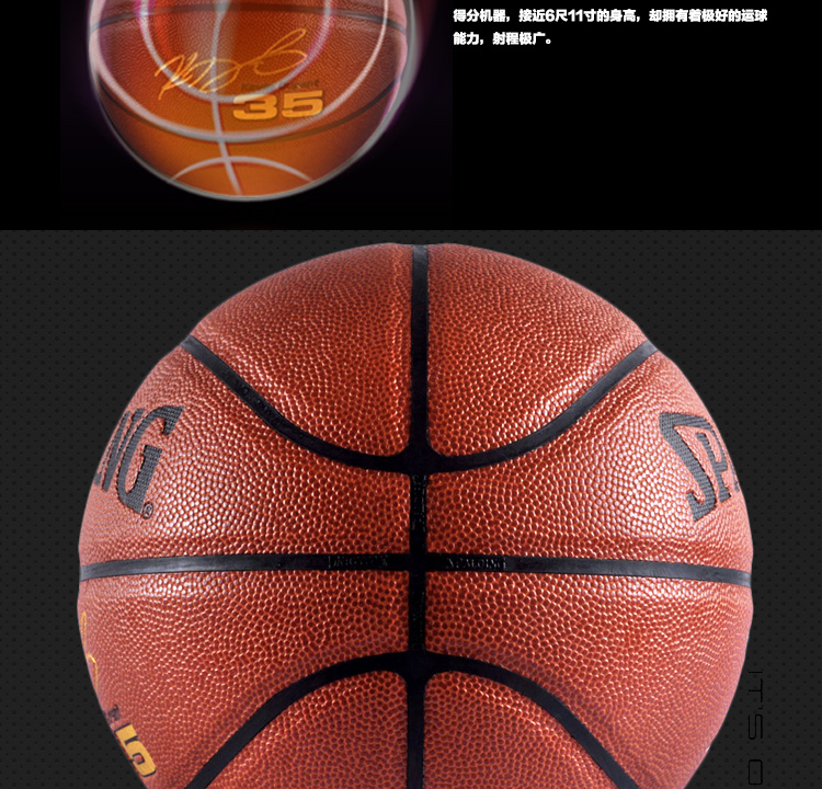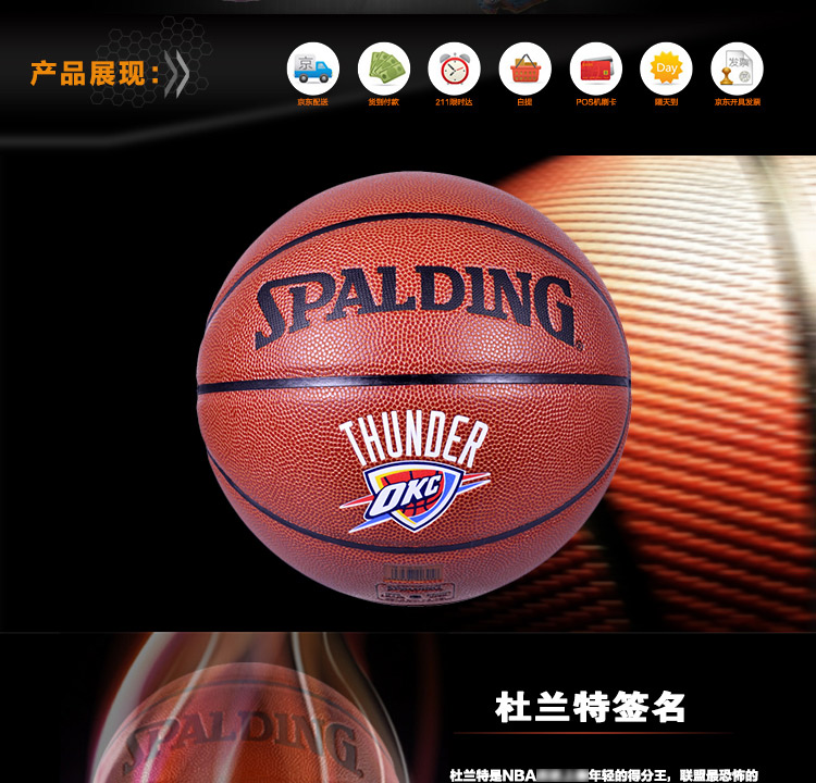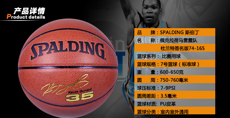 斯伯丁籃球74-165 俄克拉荷馬雷霆隊 杜蘭特簽名版 PU材質(zhì) 籃球