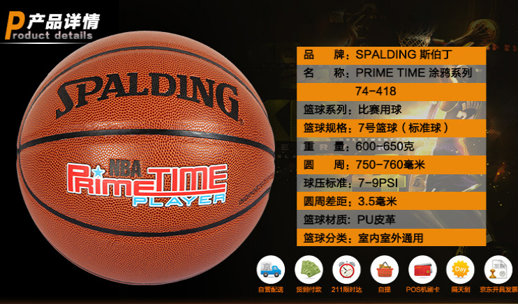 斯伯丁籃球74-418 NBA耐磨防滑7號(hào)PU室內(nèi)外耐磨訓(xùn)練比賽用球