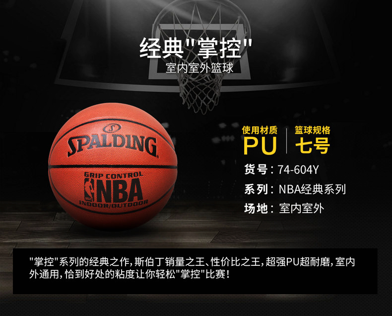 斯伯丁籃球74-418 NBA耐磨防滑7號(hào)PU室內(nèi)外耐磨訓(xùn)練比賽用球