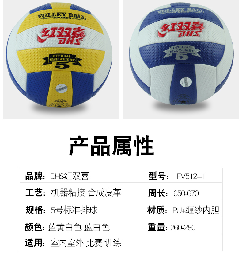 紅雙喜排球FV512-1 學(xué)生中考訓(xùn)練比賽用球PU機(jī)縫排球5號(hào)球