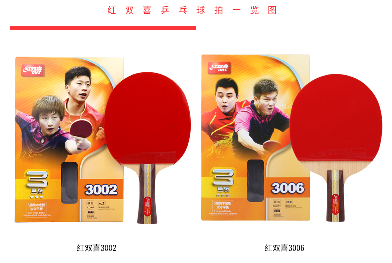 紅雙喜(DHS) R3002-R3003-R3006-R3007三星乒乓球拍