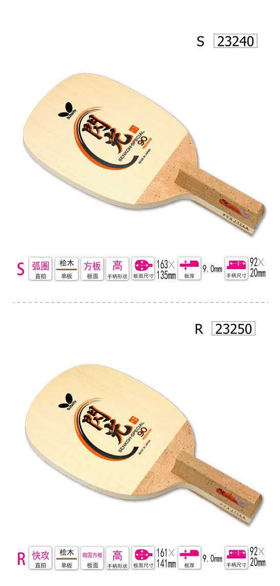 Butterfly蝴蝶23250 閃光SPECIAL90 單檜日式直拍底板