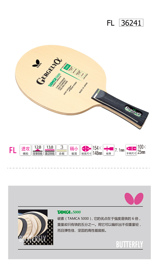 Butterfly蝴蝶36241 GERGEL-Y-α 哥格利 乒乓球底板 橫拍