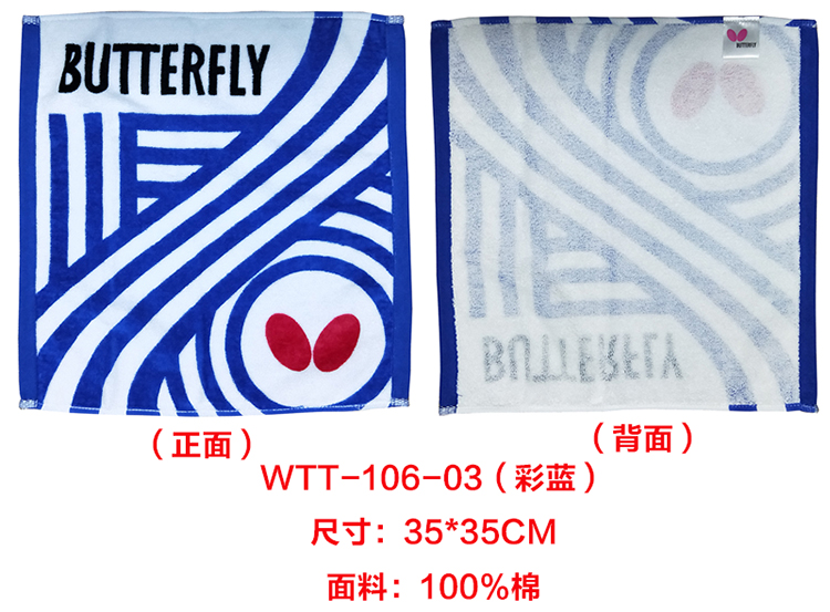 蝴蝶butterfly乒乓球運動毛巾 汗巾 WTT-106帶防偽