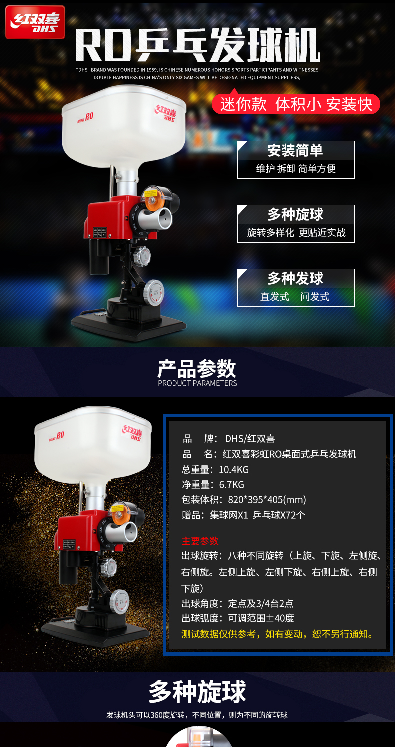 紅雙喜(DHS) R0桌面式訓(xùn)練乒乓球發(fā)球機(jī)