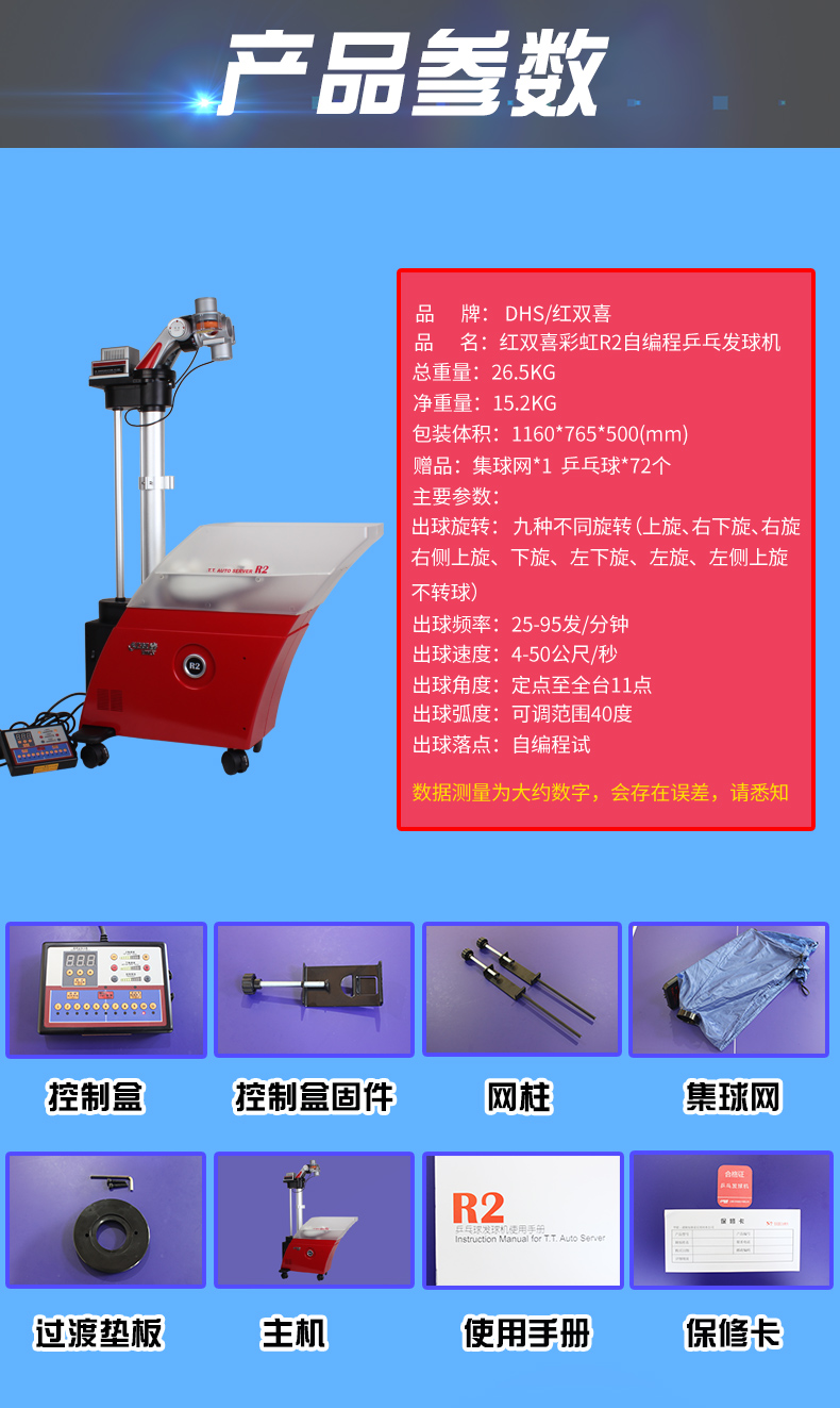 紅雙喜(DHS) R2自編程落地式專(zhuān)業(yè)乒乓球發(fā)球機(jī)