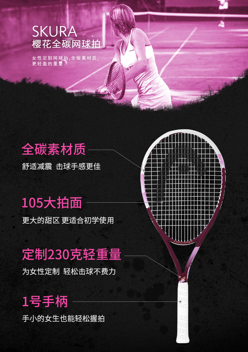 HEAD海德碳纖維全碳素初學(xué)女士定制單人網(wǎng)球拍套裝