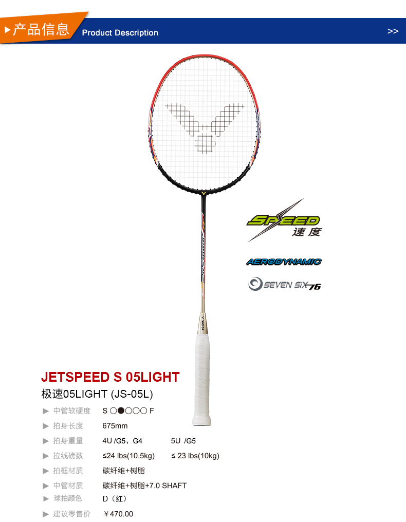 VICTOR威克多羽毛球拍單拍碳纖維業(yè)余中高級極速系列JS-08(NEW)