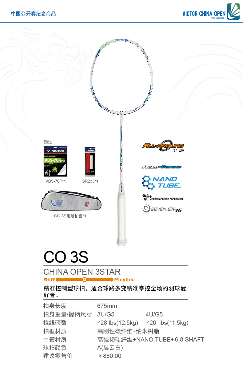 VICTOR威克多羽毛球拍單拍碳纖維業(yè)余中高級(jí)穩(wěn)定耐打精準(zhǔn)CO3S