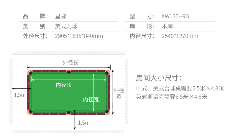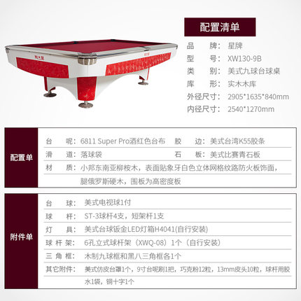 星牌 臺球桌 XW136-9B美式九球公開賽用臺