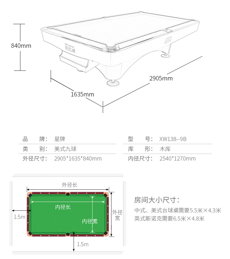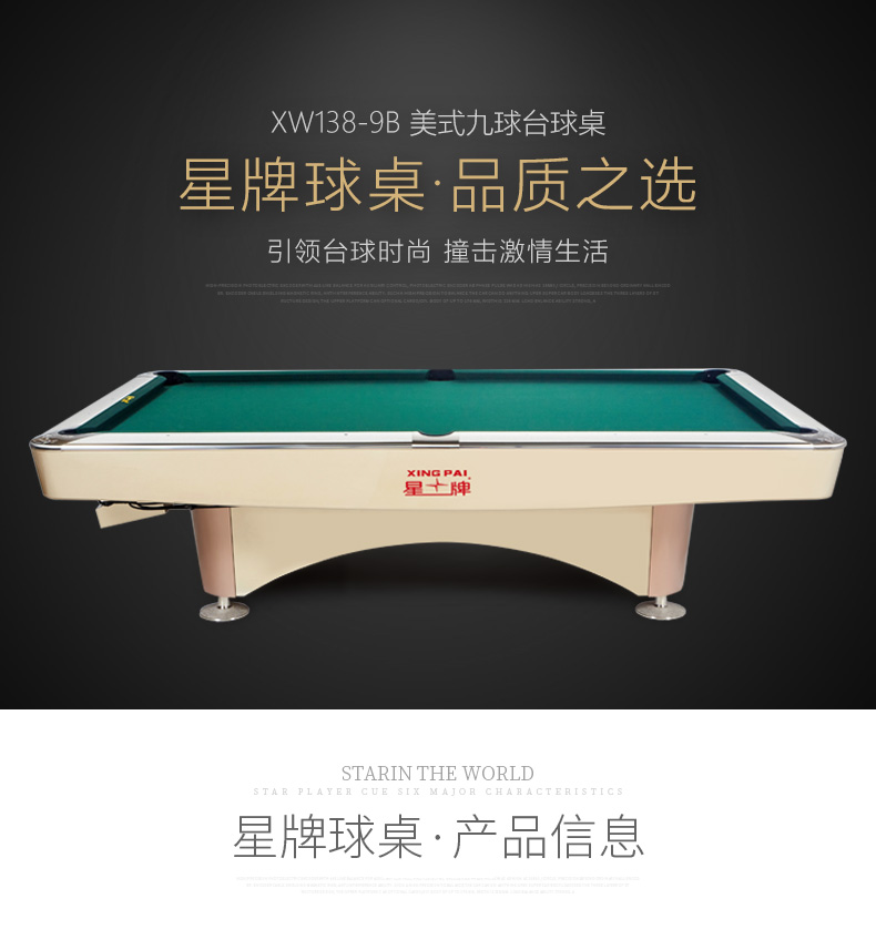 星牌 臺(tái)球桌 XW136-9B美式九球公開(kāi)賽用臺(tái)