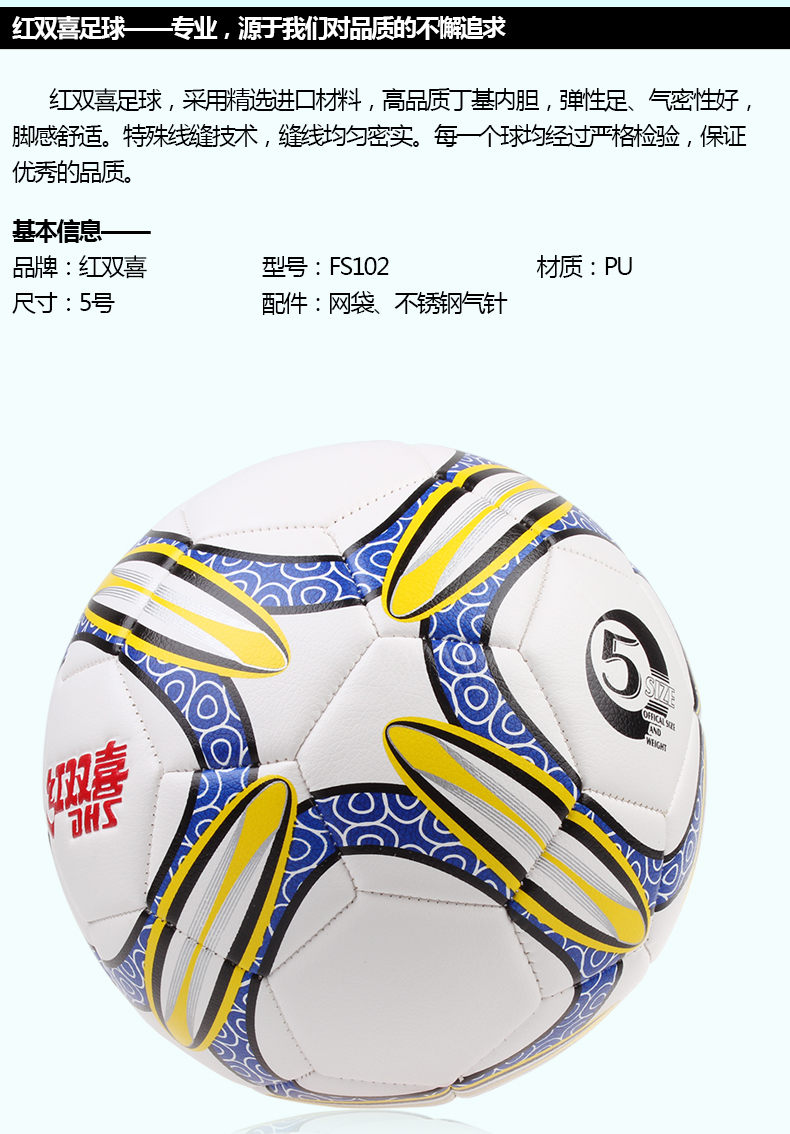 紅雙喜足球FS109 無縫熱粘合PU高彈比賽訓(xùn)練使用足球
