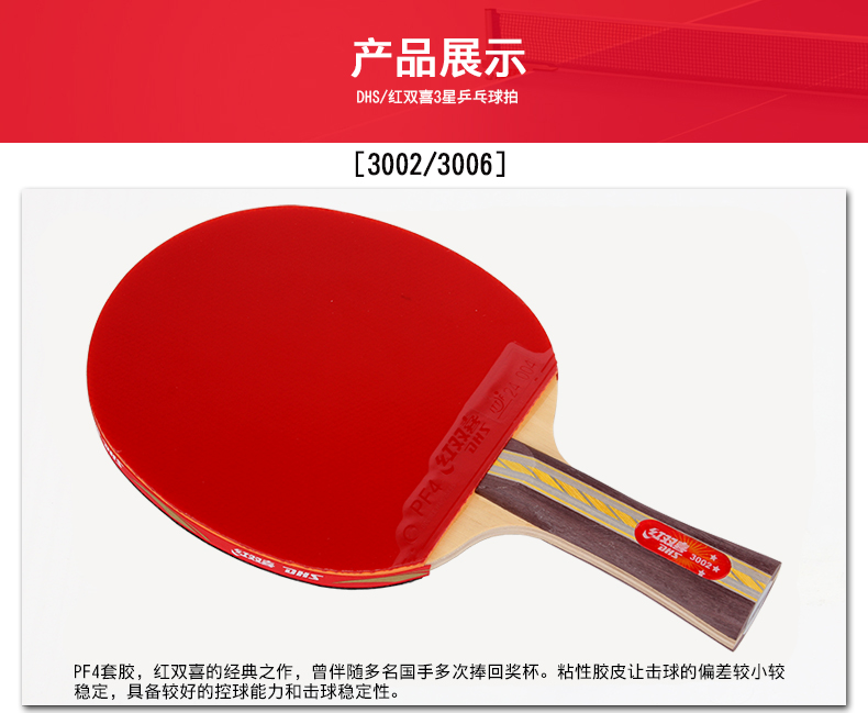 紅雙喜(DHS) R4002-R4003-R4006-R4007四星乒乓球拍
