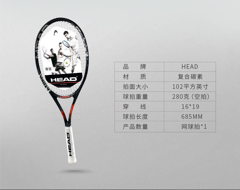 HEAD海德 單人雙人男女士大學(xué)生初學(xué)者碳鋁一體專業(yè)網(wǎng)球拍
