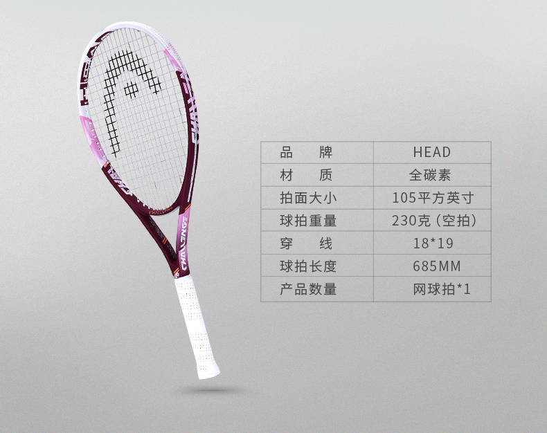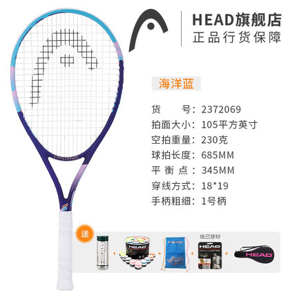 HEAD海德碳纖維全碳素初學(xué)女士定制單人網(wǎng)球拍套裝
