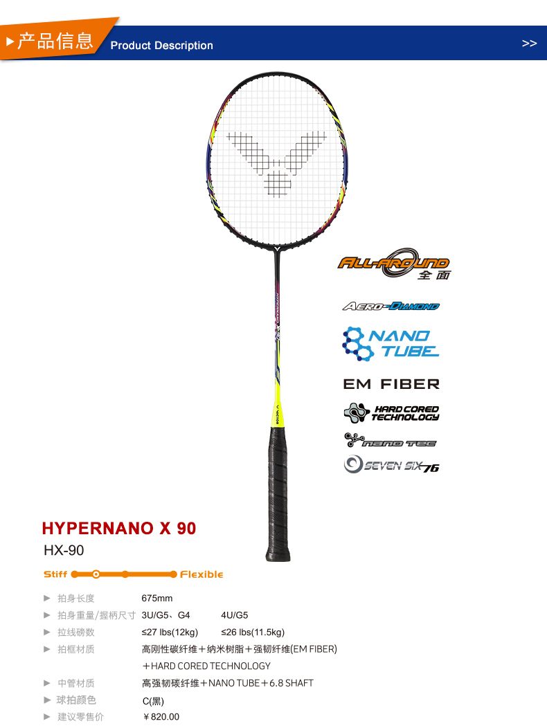 VICTOR威克多羽毛球拍碳纖維中高級精準穩(wěn)定全面類HX-90