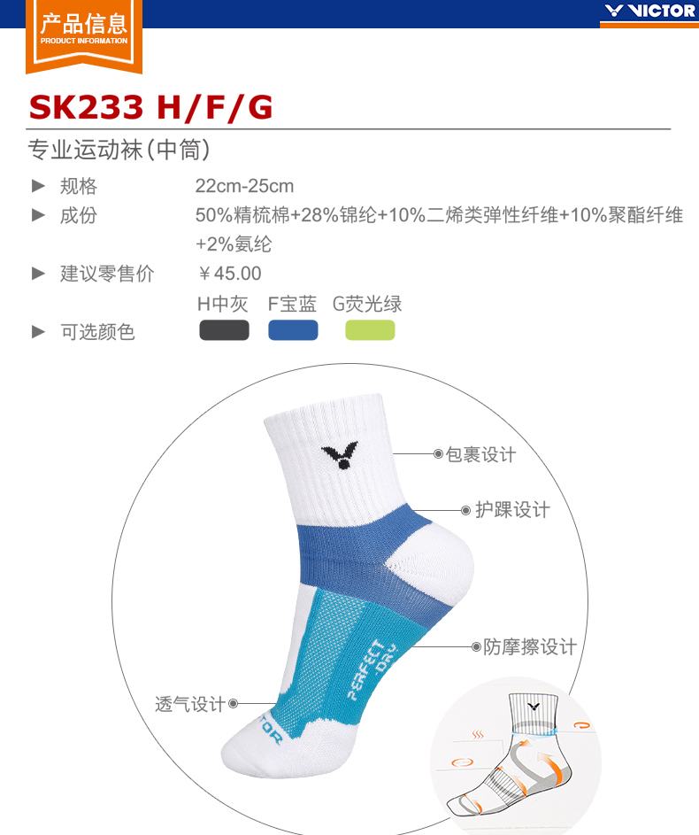 VICTOR威克多羽毛球襪男低筒運動襪含棉透氣訓(xùn)練SK134