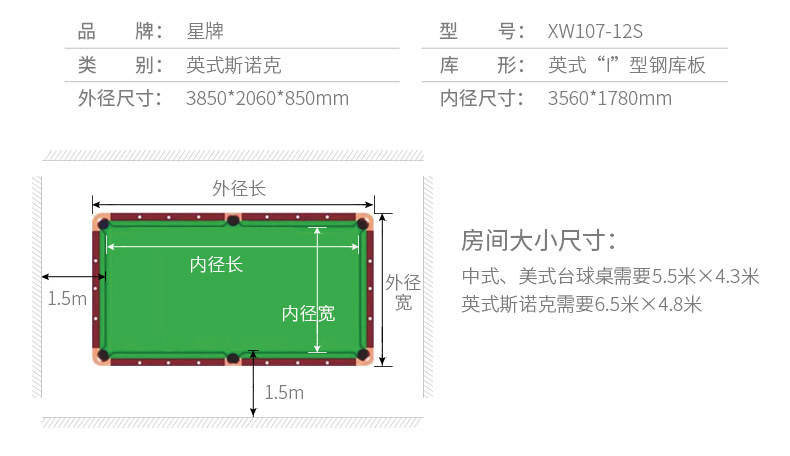 星牌 臺球桌 XW107-12S英式標(biāo)準(zhǔn)斯諾克球臺